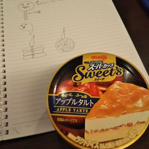 スーパーカップ スイーツの新作「アップルタルト」を食べています。 うん。シナモンフレーバー! 実はいま 10月のレッスン内容をつめています。 ハロウィンのかぼちゃスイーツや クリスマスに向けたオーナメント。 たのしくなってきたっ!